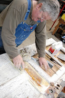 On March 28, 2009, noted wood rail car expert Glenn Guerra from Guerra Museum Services of Wisconsin visited the Museum to conduct a 4Culture-funded condition assessment and treatment plan for Chapel Car 5 Messenger of Peace. Messenger of Peace is already better documented than most objects in the collection, but it still has many secrets to reveal. Built in 1898, it is a true wood car and is a rare surviving example from the golden age of railcar construction.