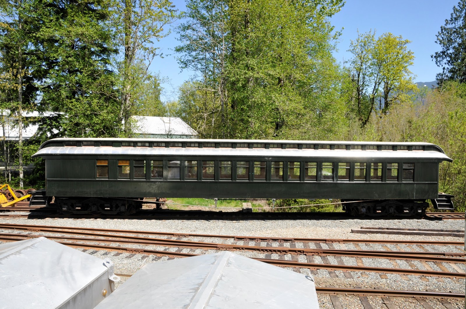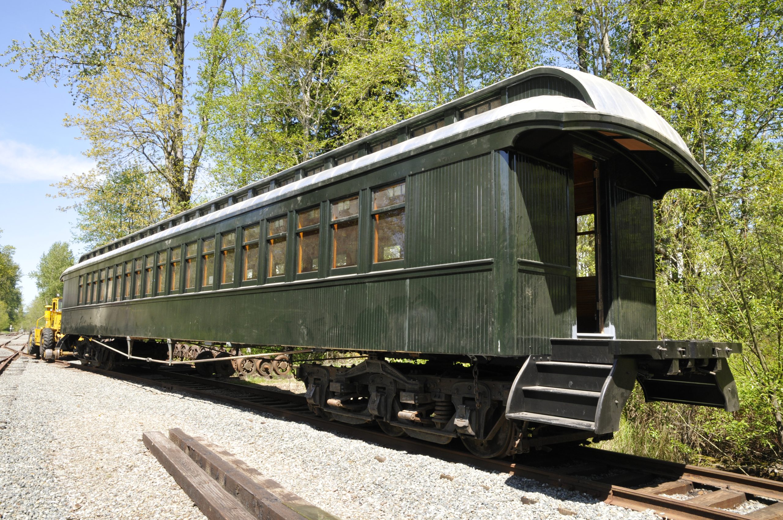 Train Shed to allow coach 218 to occupy track two in the CRC so it can have some of its new windows installed. Later this season the Messenger of Peace will return to the CRC for lettering. But on a beautiful sunny day in May just a few days short of the 115th anniversary of its dedication in Buffalo, New York, the chapel car posed for outdoor photos in Snoqualmie, Washington. And its first trip outside the CRC in over two years!