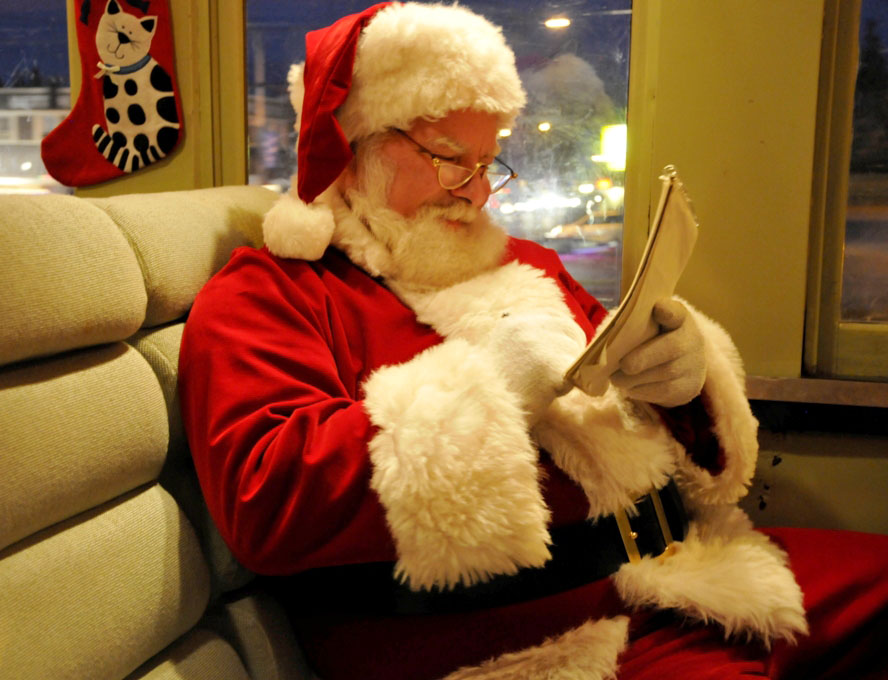Imagine you and your family aboard a vintage train with the scenic Cascade foothills outside your antique coach window. As you journey from North Bend to Snoqualmie, you hear the wheels on the train clickety-clack beneath you. The train pulls into the station and you see Santa Claus, Ms. Claus and Zoe the Elf waving from the platform. As you alight from the train, the aroma of fresh-baked cookies greets you. You hurry into the railway kitchen car for hot cocoa and coffee to go with your cookies. Santa is waiting to see your family in the depot, and he has a small gift for each of your children.