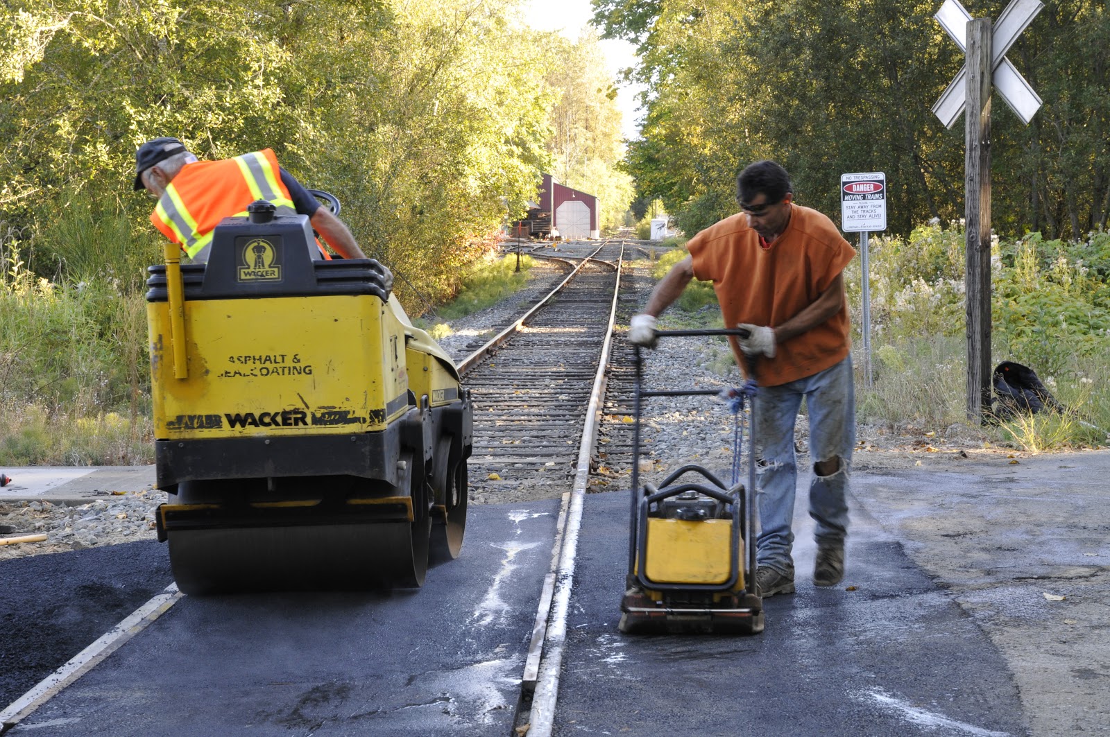 Projects usually turn out better when groups and individuals work together, and road and railway projects often work the same way. So the City of Snoqualmie and the Northwest Railway Museum hired Snoqualmie’s own Asphalt By George to perform repairs on Northern Street, Stone Quarry Road and North Bend Way and then split up the costs according to areas of responsibility. These crossings were damaged by heavy use, snowplows, and just plain old age.
