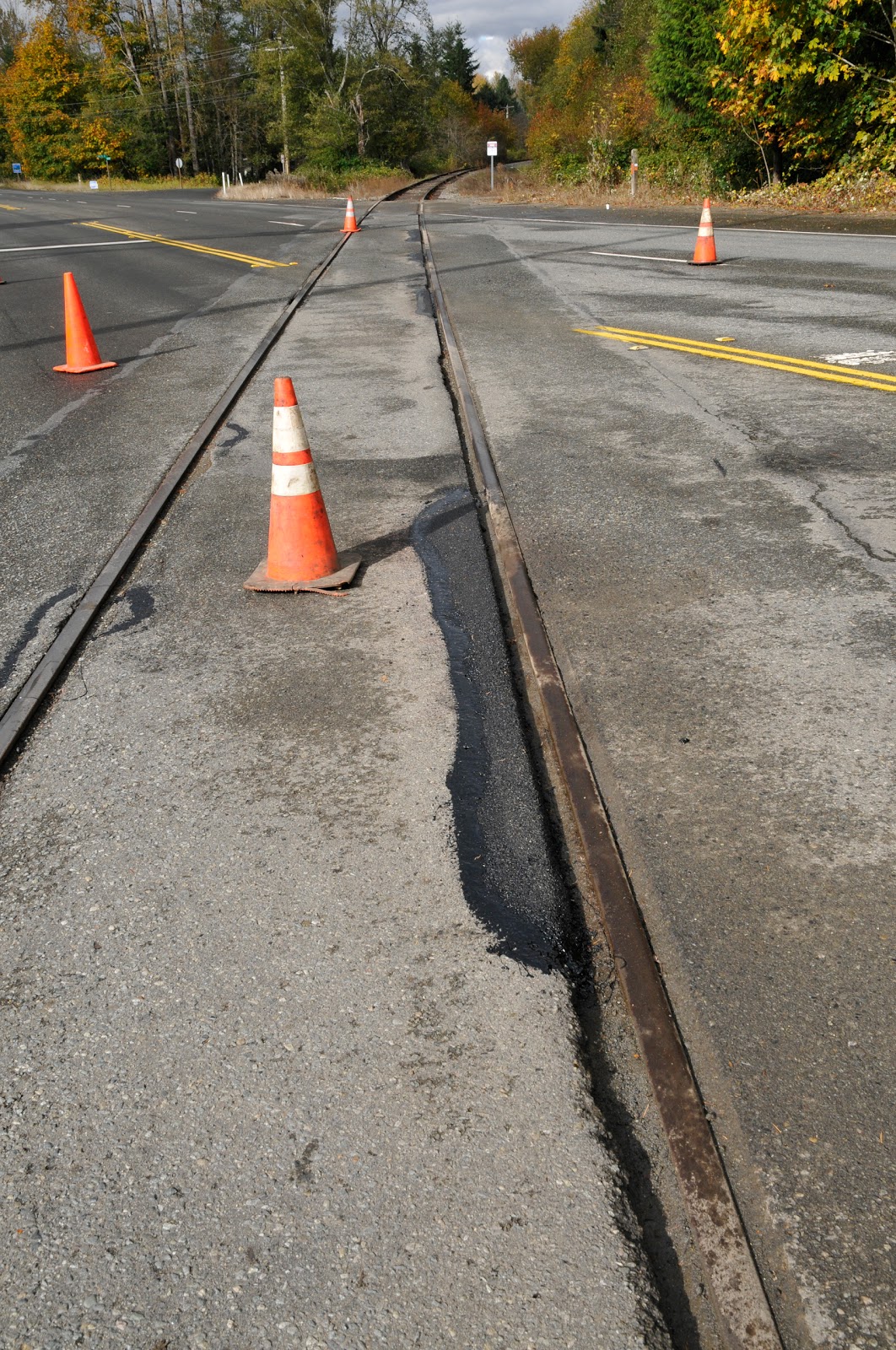 Center of crossing is repaired on North Bend Way.