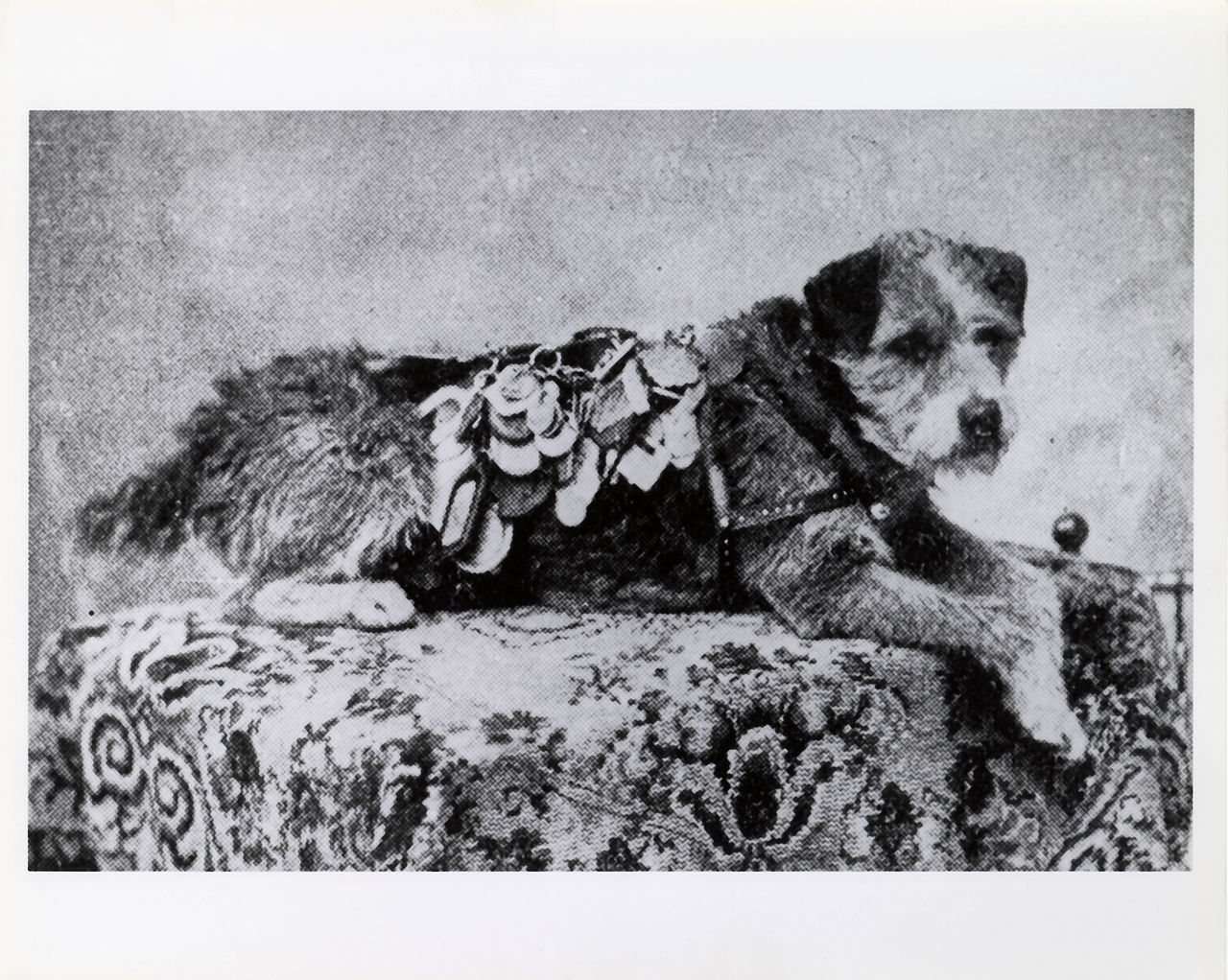 One of the most well-known American dogs was Owney the postal dog. He started in a New York post office where he grew fond of mail bags, then followed them out of the building, onto wagons, and then onto trains! Owney was quickly embraced as a mascot by the railway mail service workers and ended up travelling all over by train, collecting souvenirs from various organizations who were charmed by him on his travels. He ended up with so many objects clipped to his collar that it got to be too heavy! The Postmaster General created a tag display harness for him to spread the weight around. The postmaster in Tacoma, Washington even sent him on a worldwide trip to advertise the city in 1895! Owney traveled by steamship and train all the way to Asia, the Middle East, and all throughout the continental United States. After 9 years of service, he became ill and aggressive in his old age and had to be put down. Still, he was so beloved by the postal workers, that they raised the funds to preserve him, and he is still on display in the National Postal Museum today with many of his collected souvenirs.