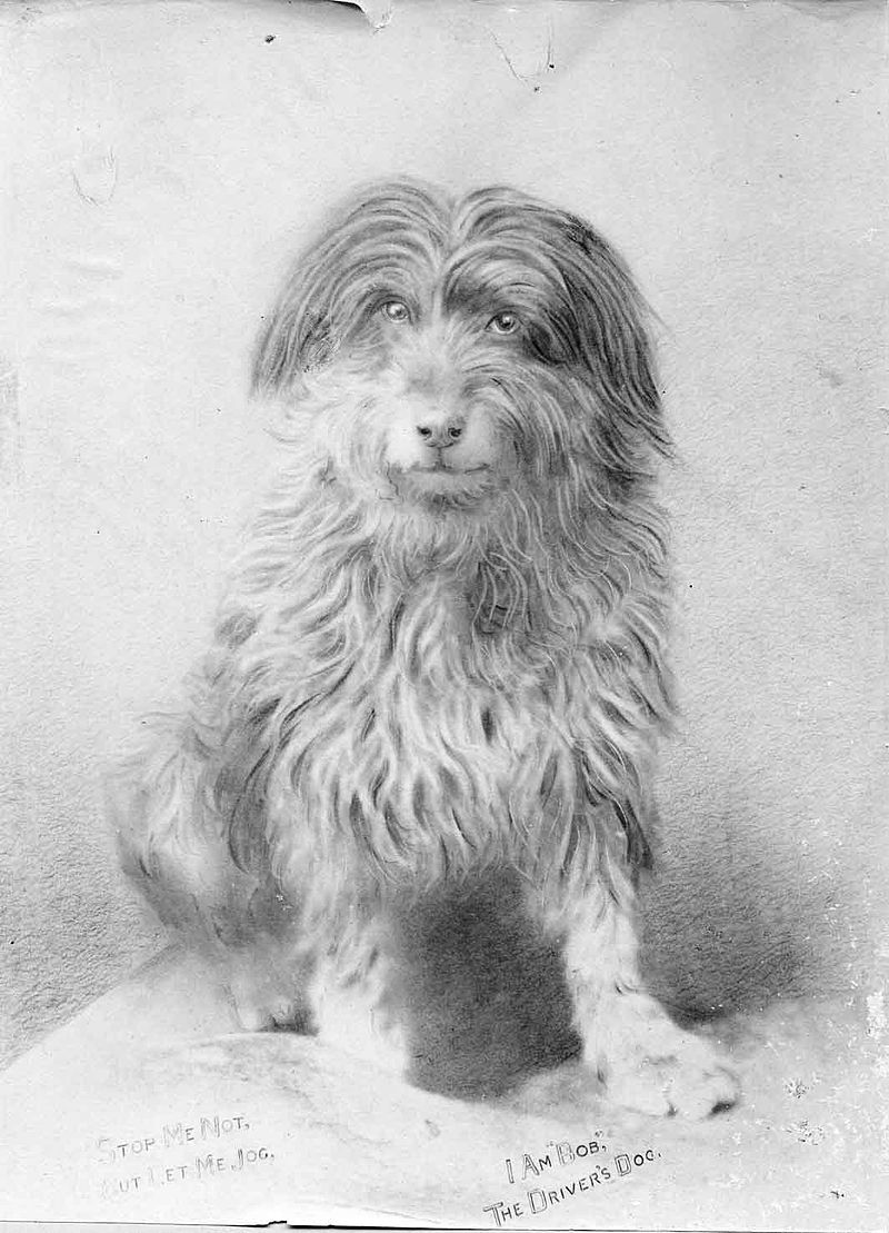 Drawing of Bob the Railway Dog. It reads “Stop Me Not, But Let Me Jog, I Am “Bob”, The Driver’s Dog.” Image courtesy of the National Railway Museum Port Adelaide South Australia.