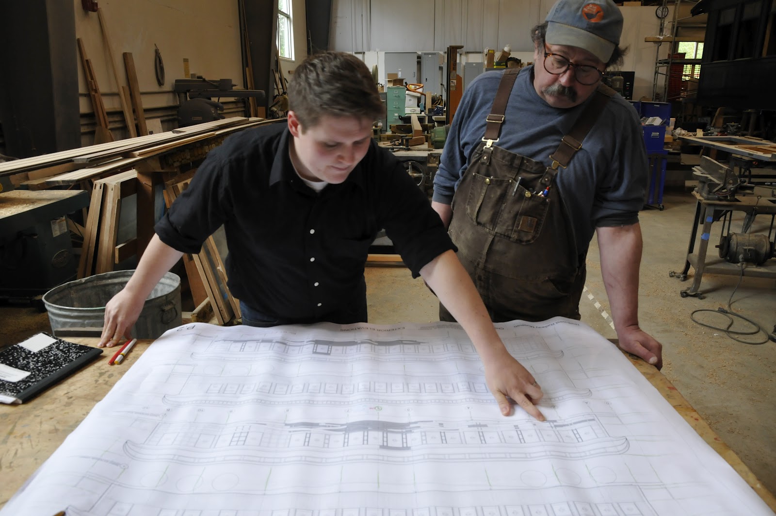 Documenting the work is really important. Replacement wood is shown shaded. Notes capture other details such as supplemental supports that may have been installed, or where replacement steel or iron was incorporated. Missing features discovered during research are also added and identified on the drawing as restoration. The final product stands as a record not just of the chapel car but of wood cars produced by Barney and Smith circa 1898. Good work Randy, and thanks to Save America’s Treasures for funding this important part of the project!