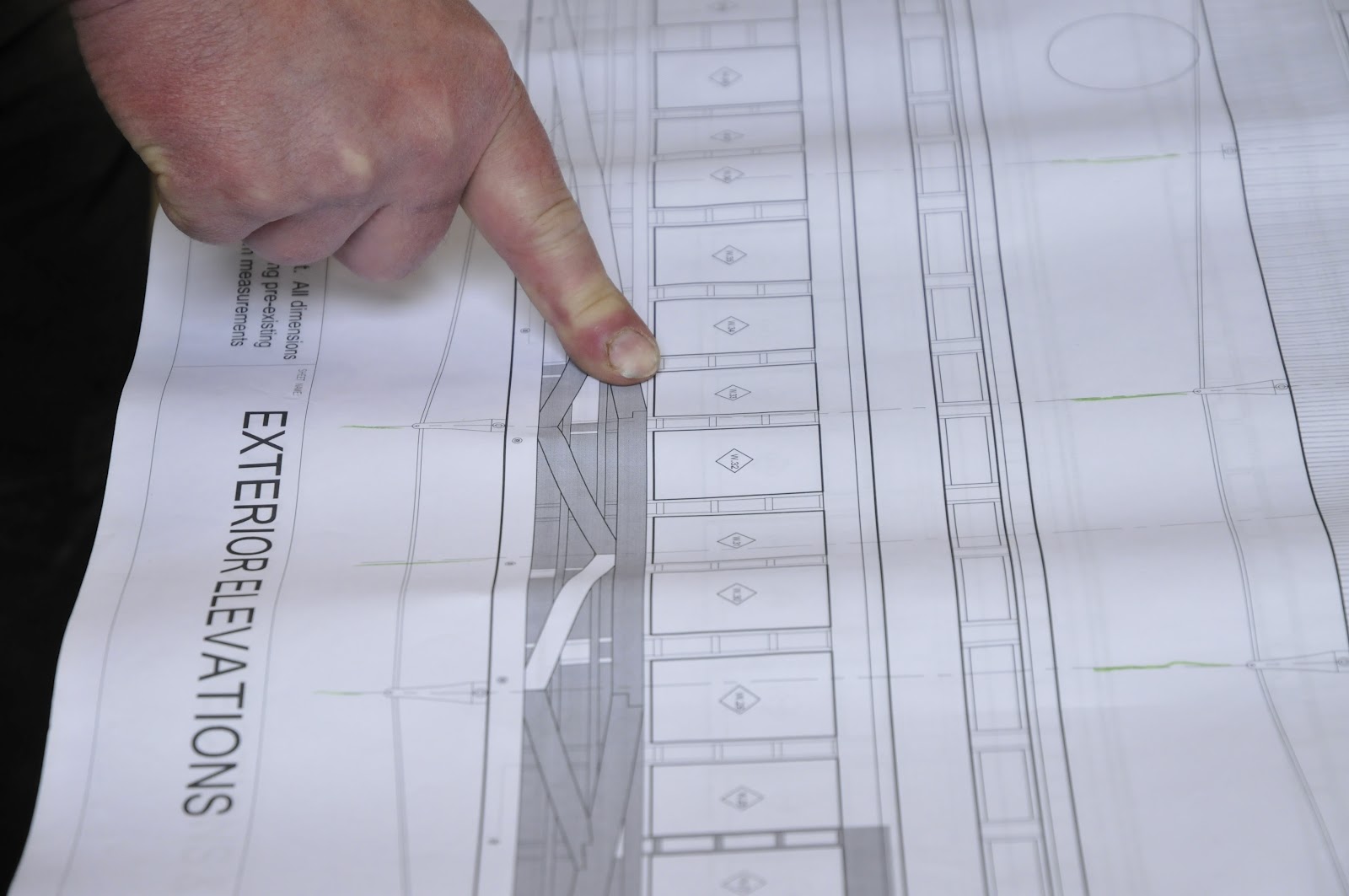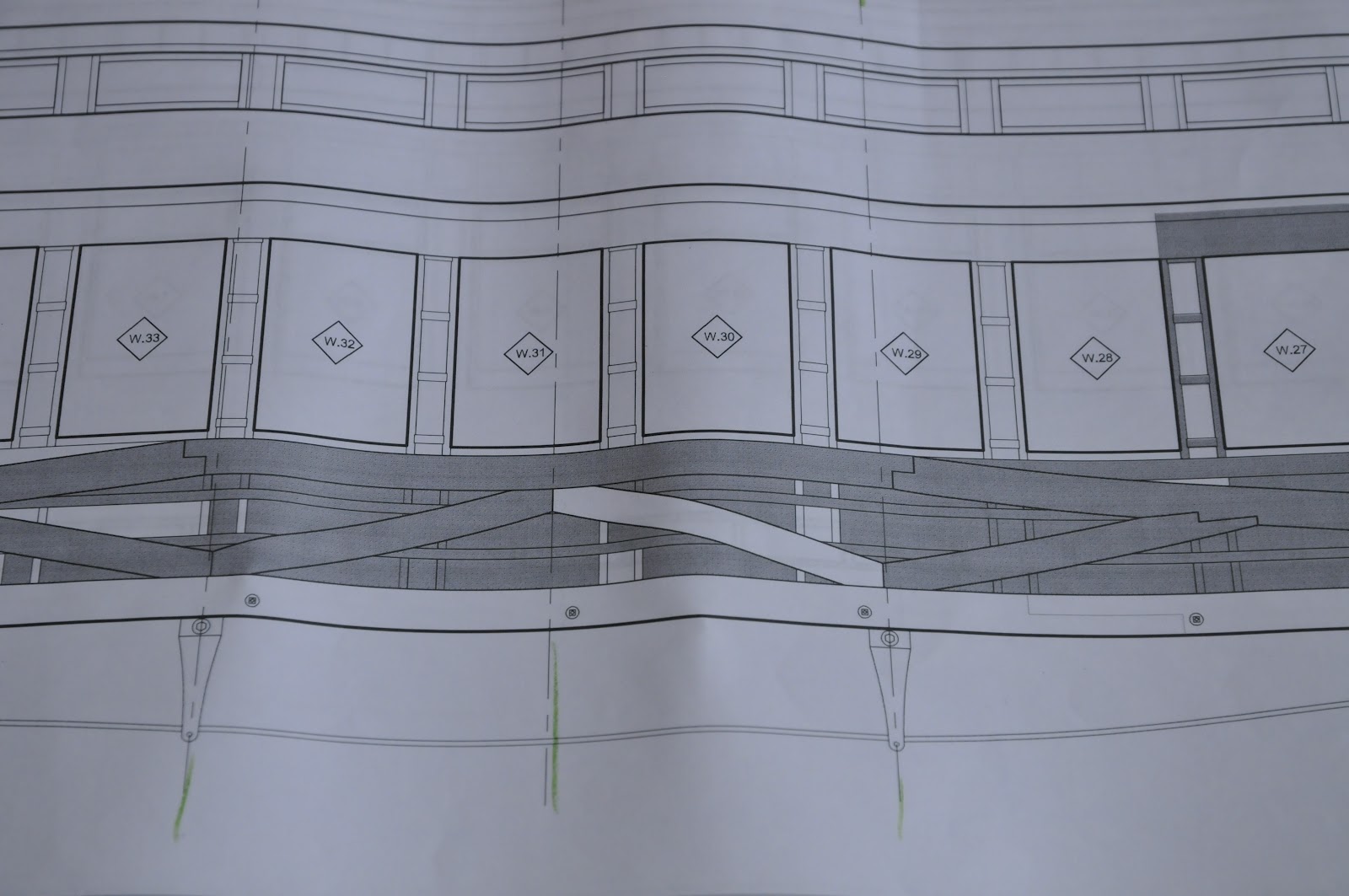 Details are important. Every window, beam and stud are shown. This is an elevation view of the left side of the car.