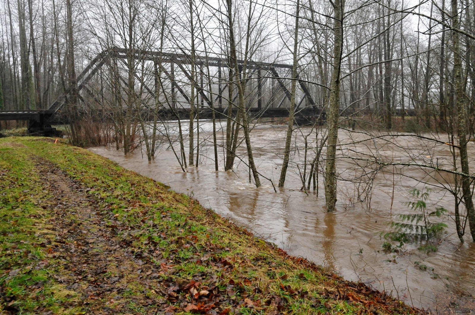 The floor reduction projects appear to have made a difference. Despite more than 51,000 cubic feet per second (normally it is about 2,000) of water flow over Snoqualmie Falls, there was no water over the track. There was some minor scouring around bridge 35 in North Bend, but no damage that requires repair at this time.