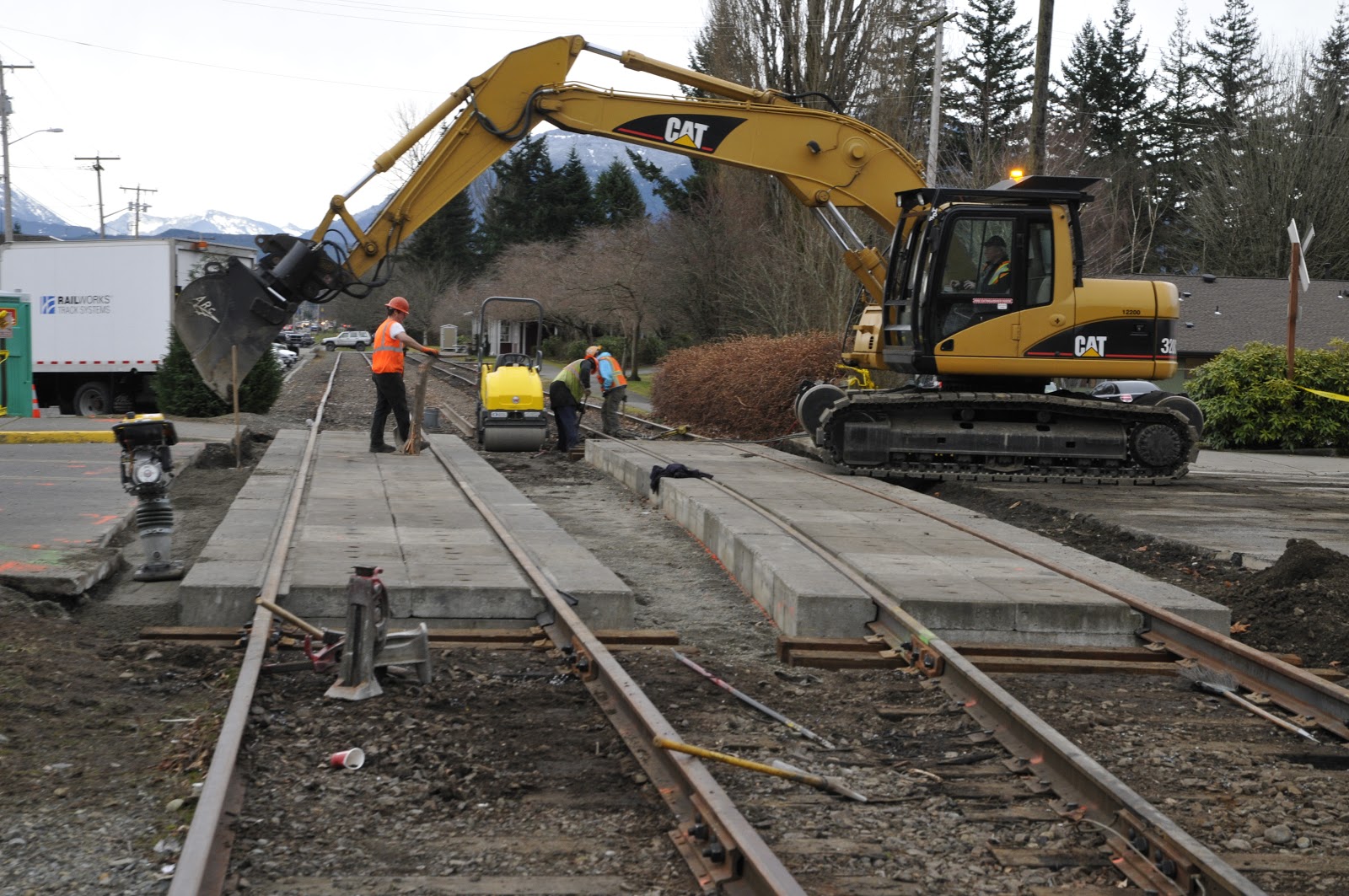 The project allowed for six days of construction, but it was completed in less than five. RailWorks Track Systems, Asphalt by George, and Snoqualmie’s Imhoff Contractor Crane Service performed the balance of the work.