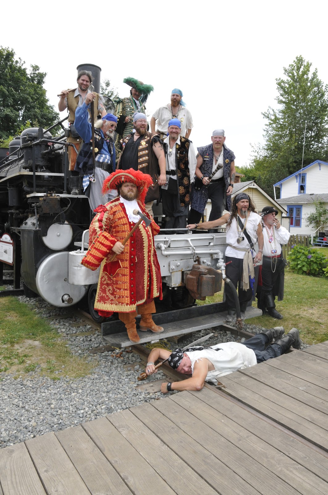 The Seafair Pirates took over locomotive 11 in search of places to plunder.