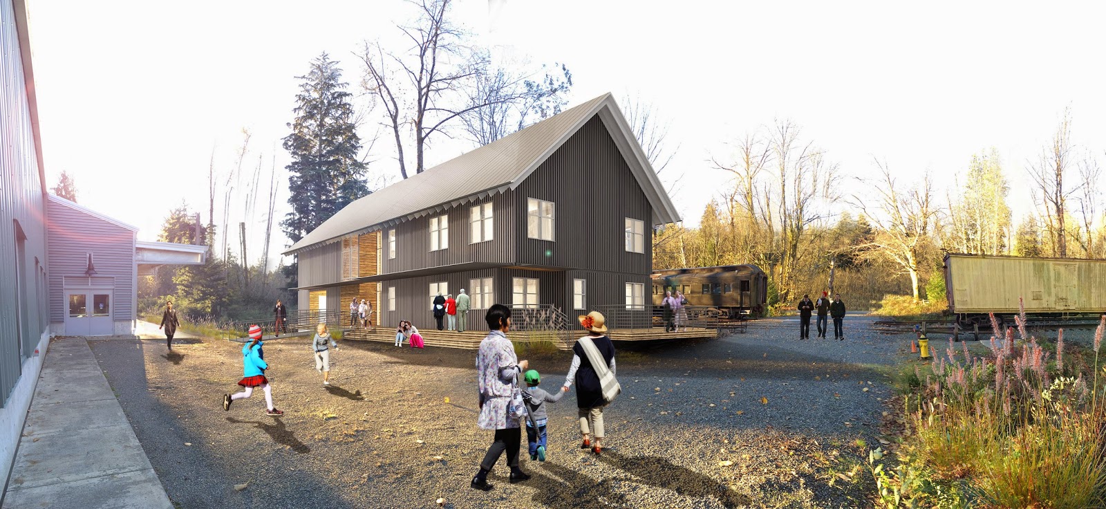 The Railway History Center is located approximate one rail mile east of the Snoqualmie Depot. The campus design was developed in 2007 by a design consortium including the Miller|Hull Partnership, Outdoor Studio, KPFF Consulting Engineers. Funding sources include individual contributions, private foundations, the Washington State Historical Society Heritage Capital Projects Fund, and 4Culture. Your contribution can make a huge impact! Please consider supporting construction of the Railway Education Center with a contribution using the Museum’s online donation page here.