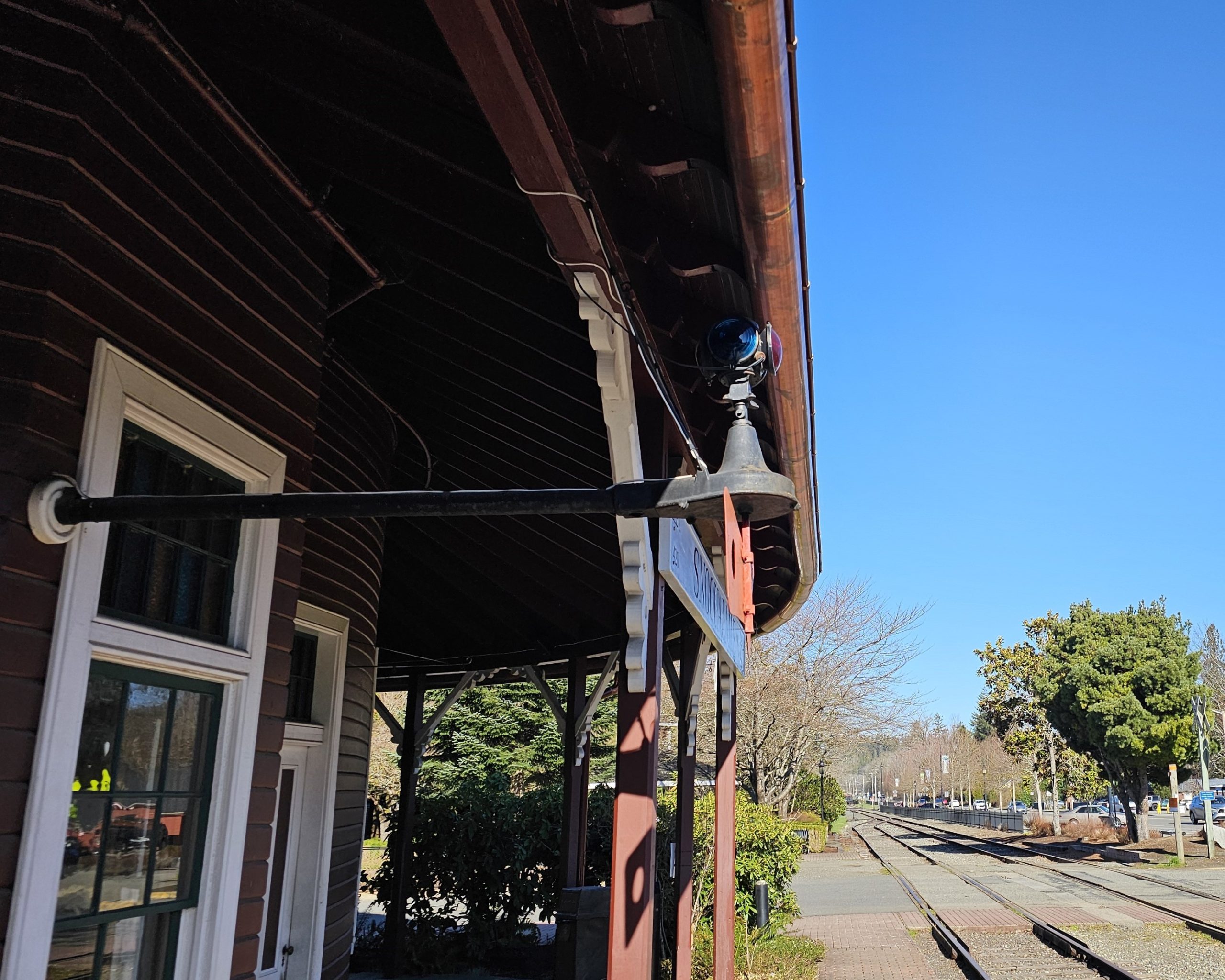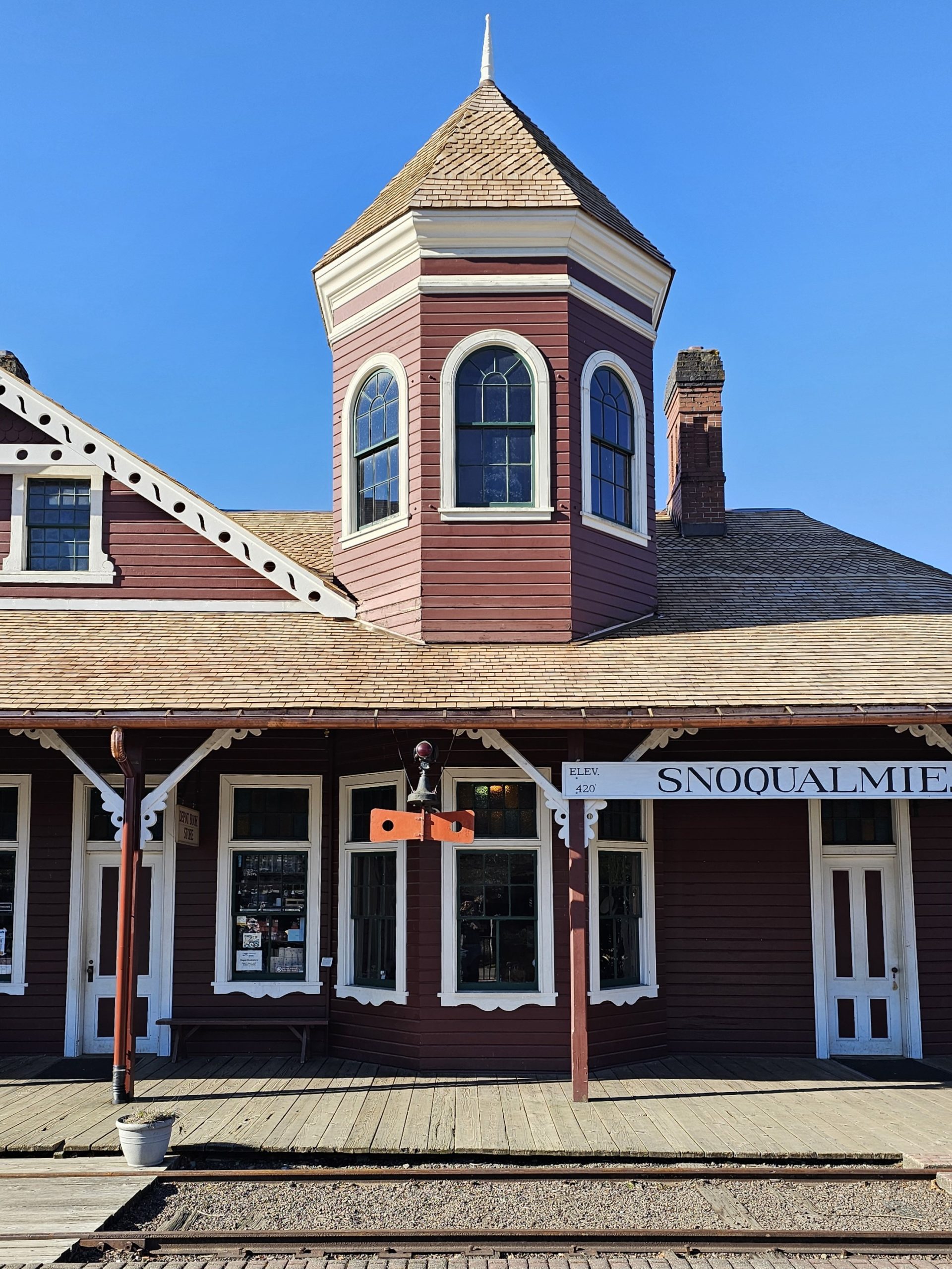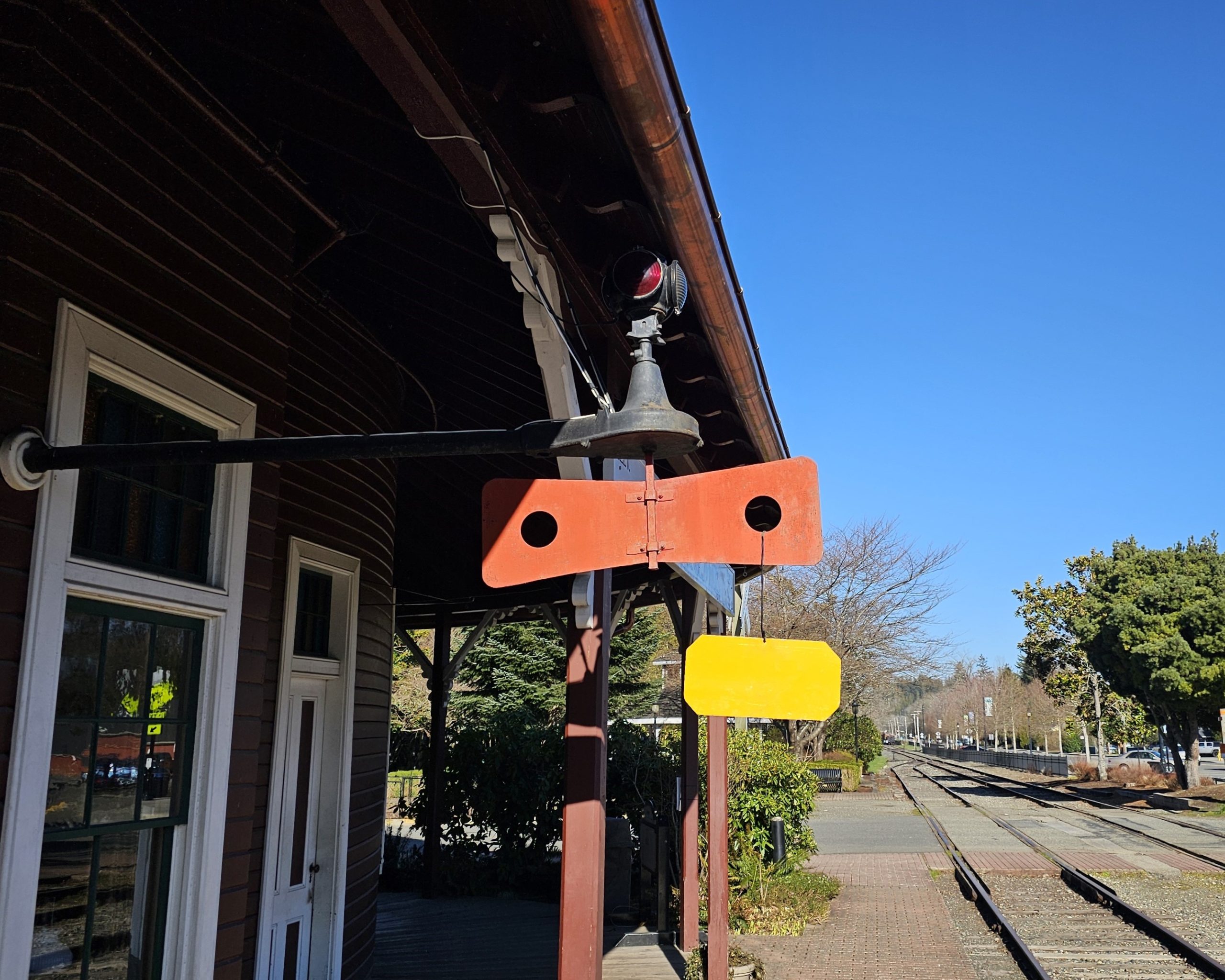 The Snoqualmie Depot is a wonderful example of Victorian architecture. Hanging from the front of the depot is a strange metal sign that appears more decorative than functional. Yet this bowtie is a signal, an important one from the days before radios and telephones.