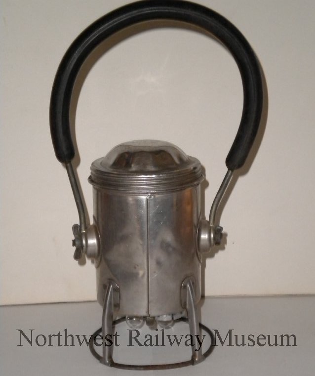 Conger Lantern Co. electric lantern. Metal electric lantern that holds a 6 volt battery. Lantern is etched 13/43 on the side of the lantern. The lantern has a black rubber bail and bottom of the lantern is marked Conger Lantern Co./ Portland, Ore., PAT NO. 2653218. Patent was registered in 1953. A copy of the patent is in the multimedia file.